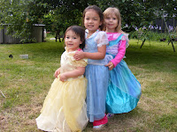 But today, the kids are online and they have recently discovered Disney.com (they amazing land of fairy princesses where all their dreams come true...) and I hear her from the kitchen singing again "kinga.. kinga.. kinga..." So I peak in and they are listening to Aroura (Sleeping Beauty) from the Disney Princess Enchanted Tales DVD and she is singing.. "I've got the keys to the kingdom.." check it out here so, that is what she's been singing all this time since about a month ago when we rented the movie from Blockbuster..
